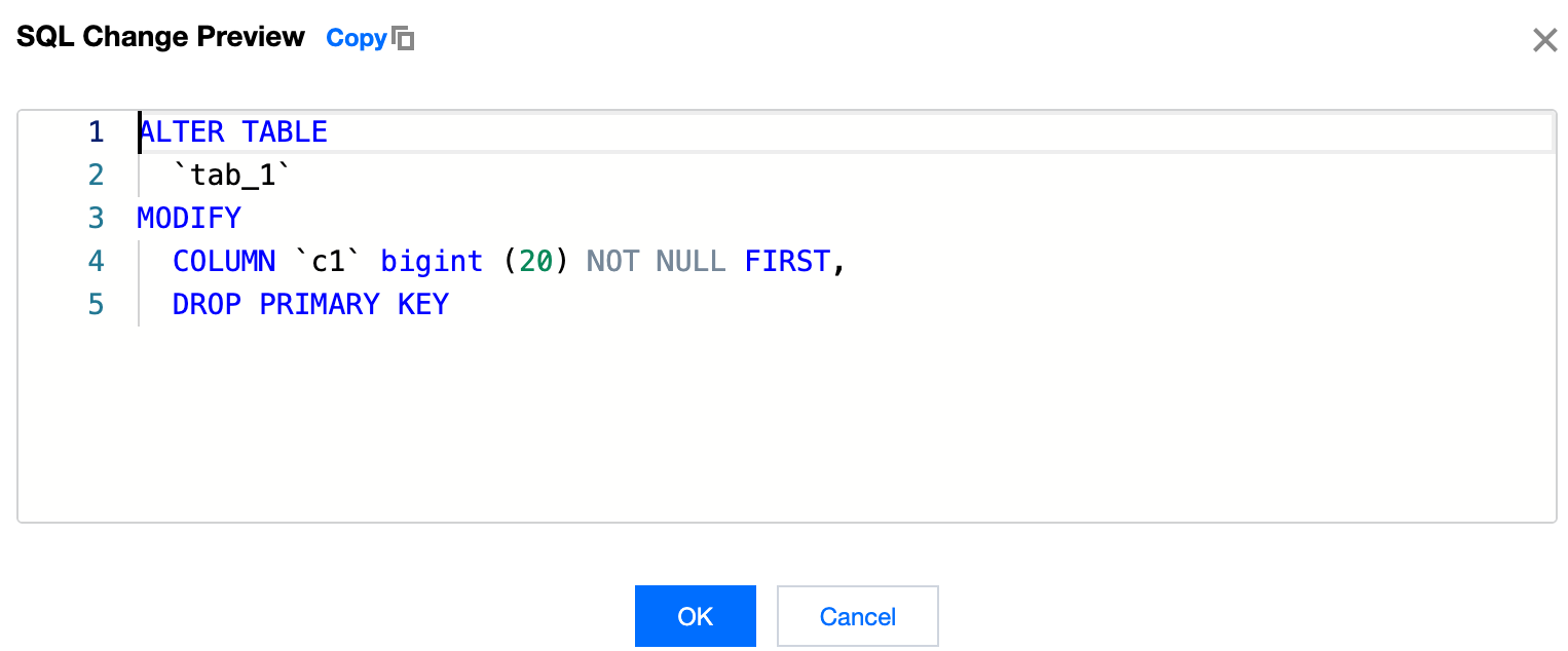 In the left sidebar, hover over the table name, select Operations > Edit table structure, and modify the basic table information, column information, indexes, foreign keys, and partitions. After making the necessary changes, click Submit, and then click OK in the pop-up dialog box.