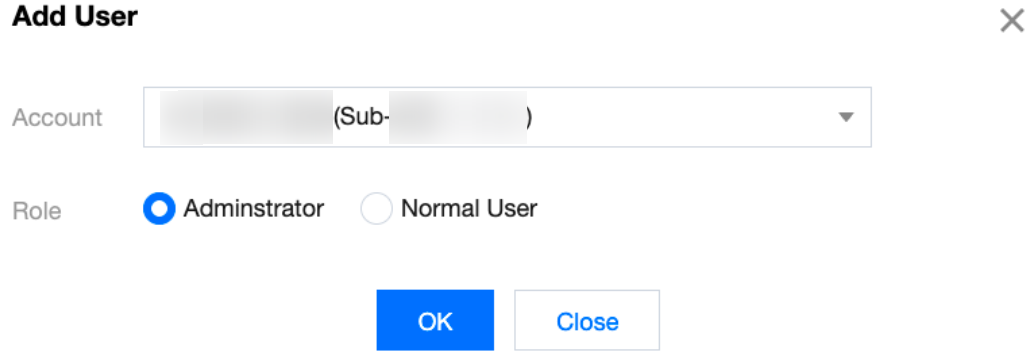 4. In the pop-up dialog box, enter or select the sub-account to be added, select the account role, and click OK.