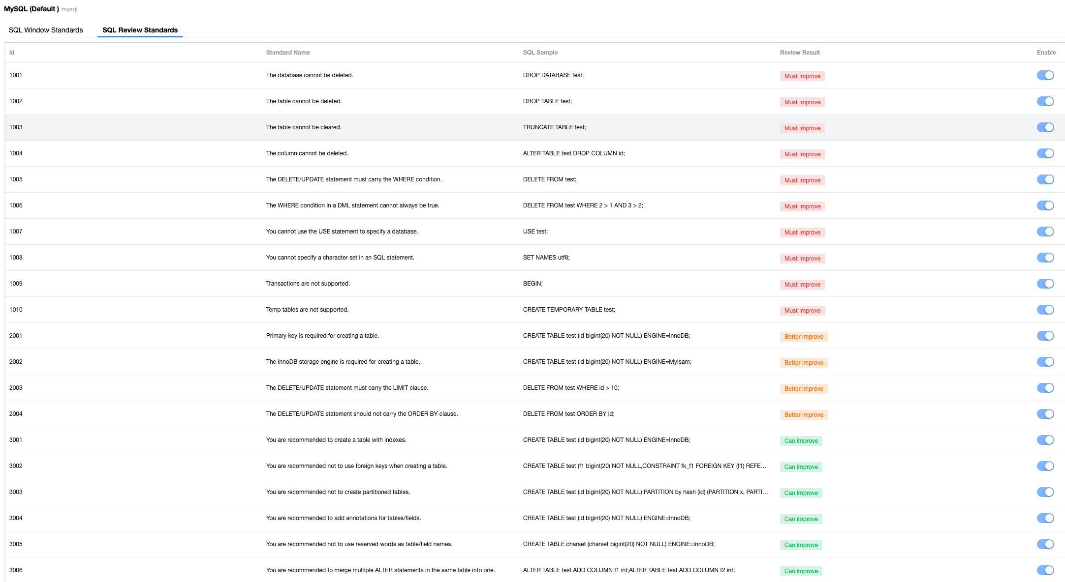 MySQL default: SQL Review Standards
