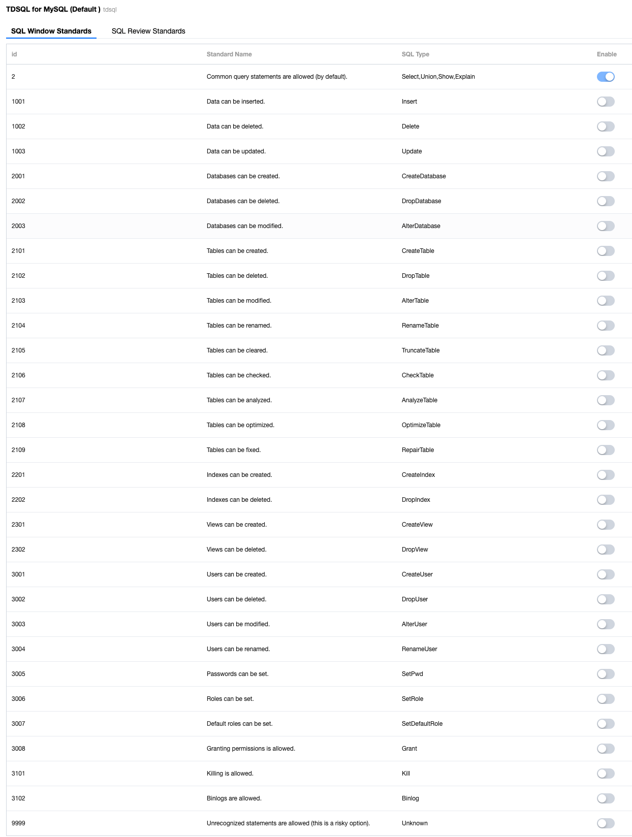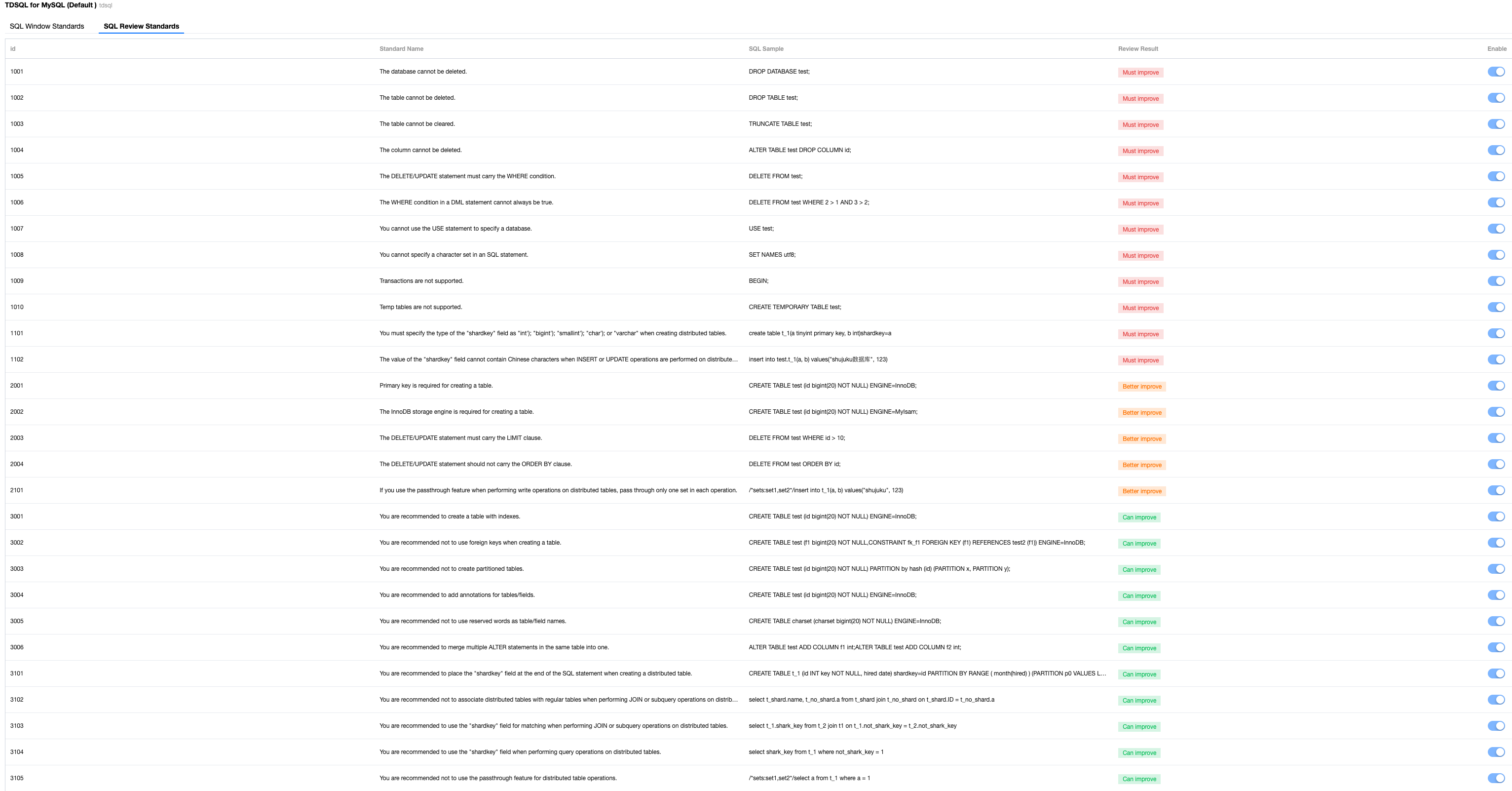 TDSQL default: SQL Review Standards