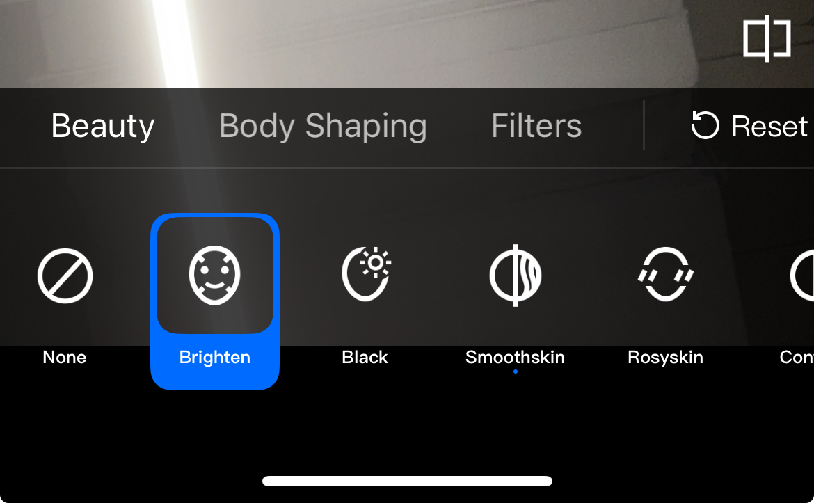 // Color of the following properties can be modified externally// Background color of the effect panel@property(nonatomic,strong)UIColor *panelBackgroundColor;// Dividing line color@property(nonatomic,strong)UIColor *panelDividerColor;// Selected item color@property(nonatomic,strong)UIColor *panelItemCheckedColor;// Text color@property(nonatomic,strong)UIColor *textColor;// Selected text color@property(nonatomic,strong)UIColor *textCheckedColor;// Progress bar color@property(nonatomic,strong)UIColor *seekBarProgressColor;/// Configure the beauty panel settings according to the beauty package options./// - Parameter panelLevel: Beauty Package/// Beauty Package Types: A1_00,A1_01,A1_02,A1_03,A1_04,A1_05,A1_06,S1_00,S1_01,S1_02,S1_03,S1_04,S1_05,S1_06,S1_07-(void)setPanelLevel:(TEPanelLevel)panelLevel;/**configure the effect parametersbeauty: Effect json pathbeautyBody: Body shaping json pathlut: Filter json pathmotion: Animated effects json pathmakeup: Makeup json pathsegmentation: Background segmentation json pathlightMakeup: The Path to Light and Elegant Makeup*/-(void)setTEPanelViewRes:(NSString *)beautybeautyBody:(NSString *)beautyBodylut:(NSString *)lutmotion:(NSString *)motionmakeup:(NSString *)makeupsegmentation:(NSString *)segmentationlightMakeup:(NSString *)lightMakeup;