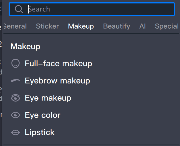 3. In the makeup component panel, select the desired makeup asset from the resource panel.