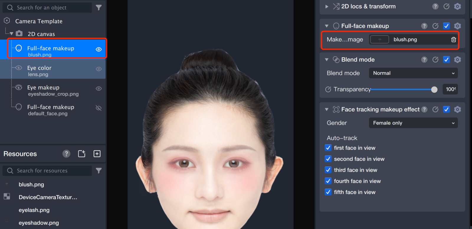 Import valid makeup assets into the Tencent Effect resource panel located at the bottom left.