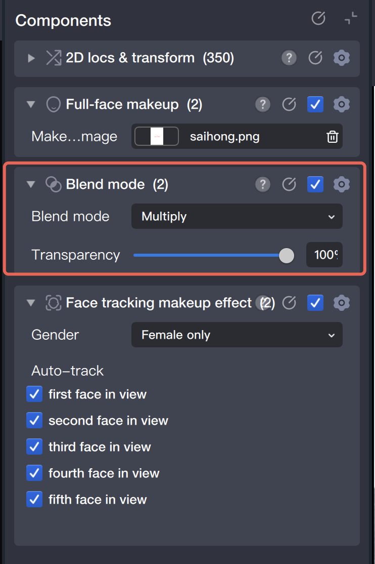 4. Set the blend mode and opacity for the makeup asset.