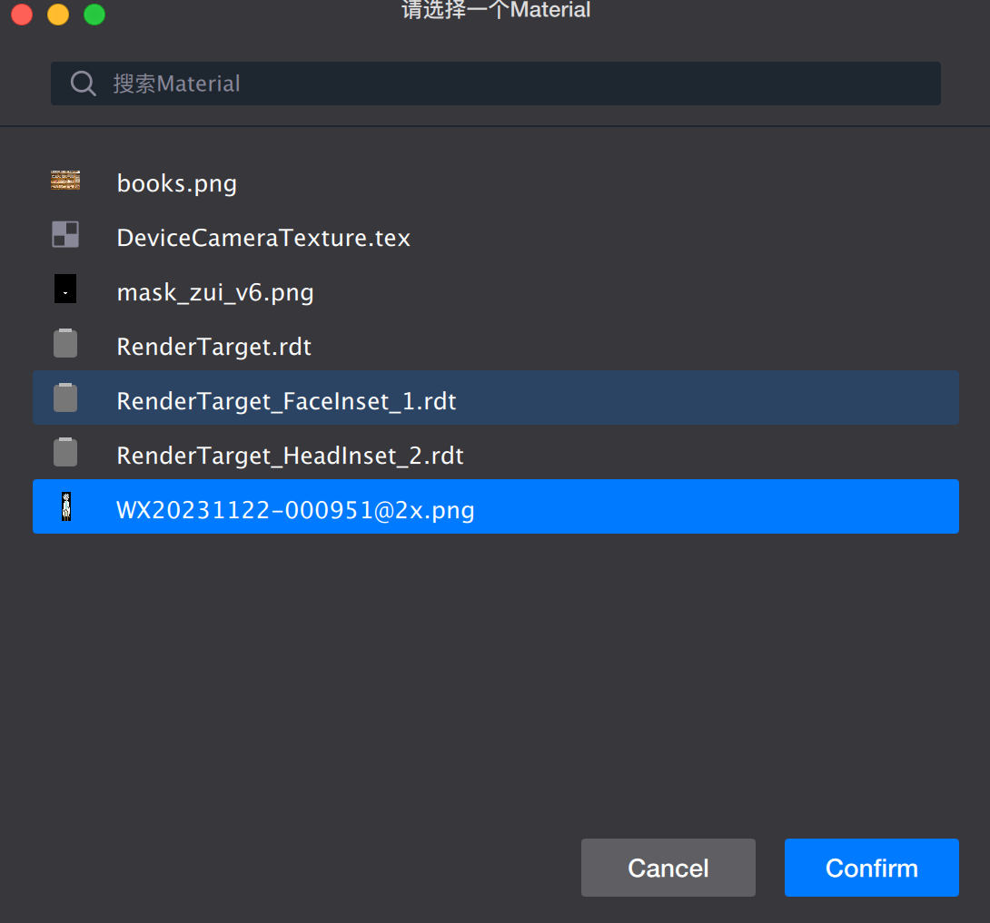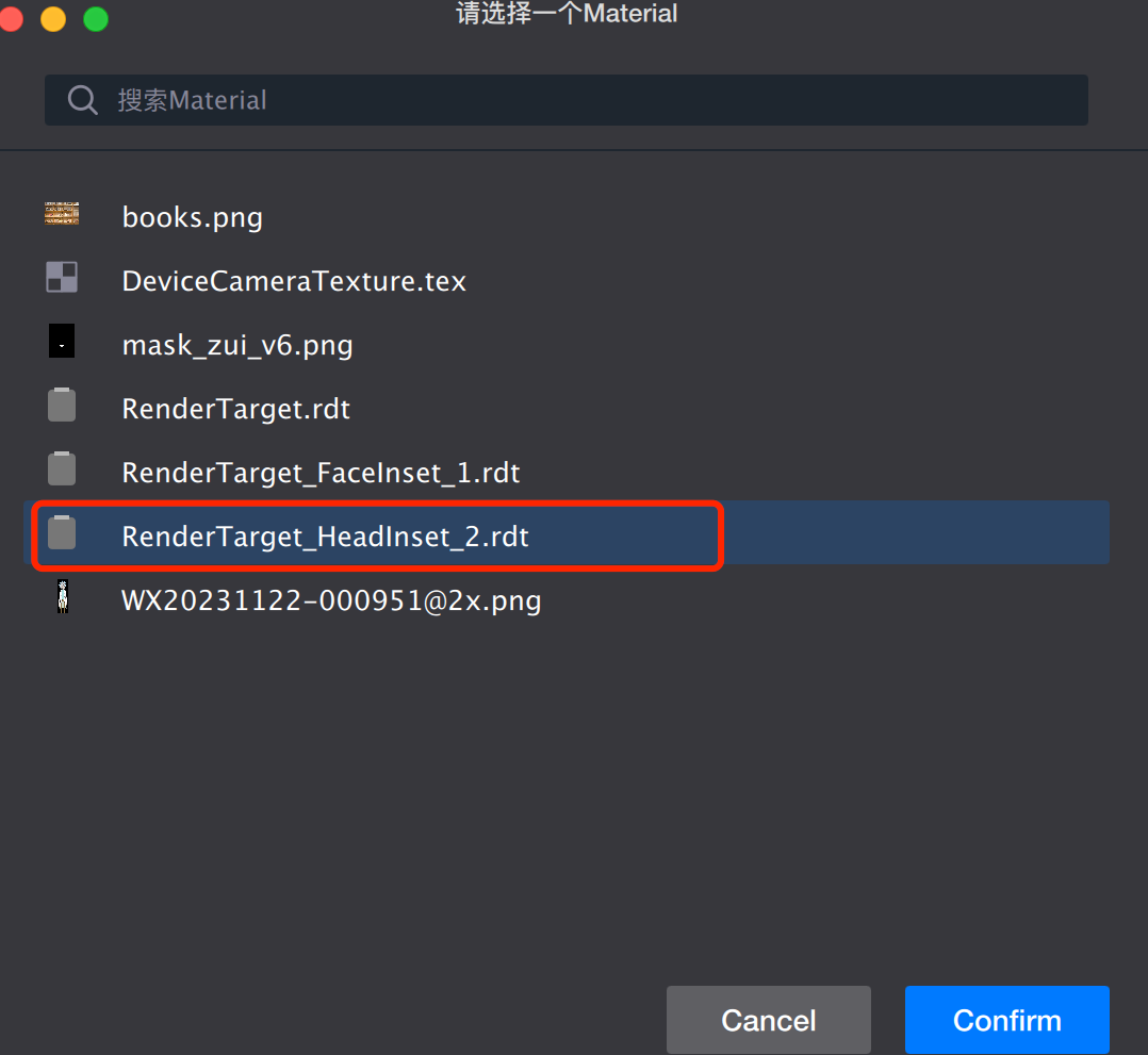 2. In the property panel, click the input box next to the image file. From the resource list that appears, select the RenderTarget_HeadInset_2.rdt file generated in Step 2 and assign it as the sticker's texture.