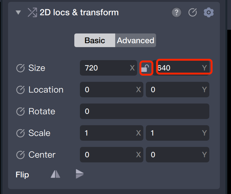 5.2 Set the H (Height) value to half the size, such as 640.
