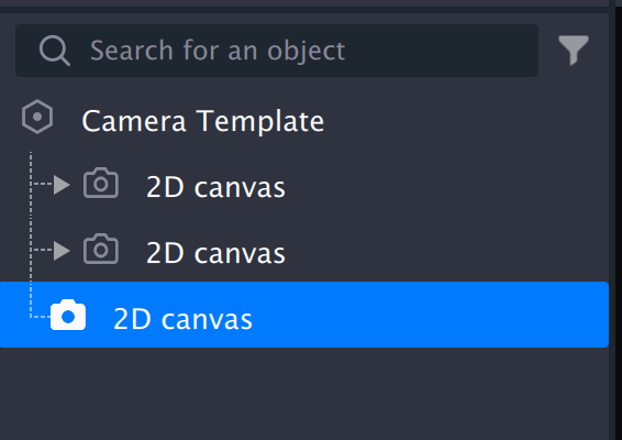For example, in a dual-frame shooting project, you need three 2D canvases: the bottom canvas holds the two upper canvases, and the third canvas acts as the final rendering layer. As shown below, the canvases are organized hierarchically, and the first two canvases should be added to the third canvas in vertical order.