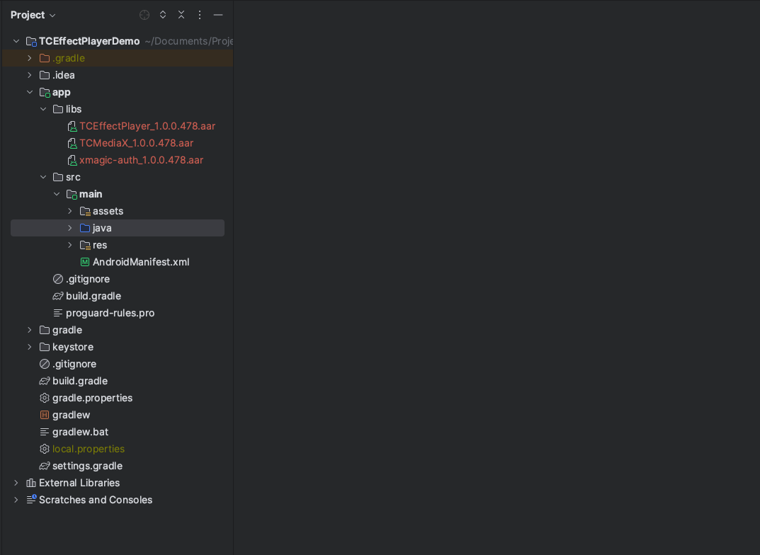 If Tencent Cloud RT Cube SDK were not integrated in your previous project, it is recommended to integrate the simplified Tencent Cloud Player SDK (LiteAVSDK_Player_Mini). Place the corresponding LiteAVSDK_Player_Mini.aar file under the libs directory of the project, and then add the corresponding dependency in dependencies: