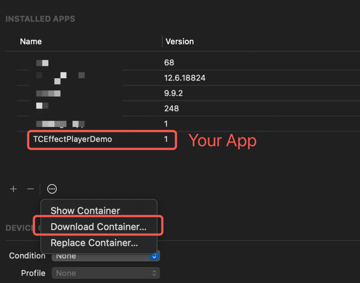 The logs for the special effects player are stored in the sandbox directory: Documents/TCMediaLog.