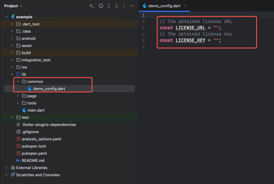 2. After filling in the License information, the FTCMediaXBase.instance.setLicense method will be called at startup to initialize it. For specific logic, see the file: example/lib/main.dart.