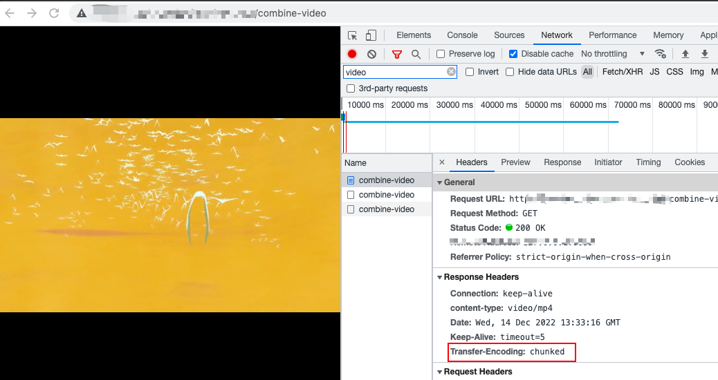 async function sequentialCombine(urls, destination) {try {// Process each URL in orderfor (let i = 0; i < urls.length; i++) {const url = urls[i];// Get the current clipconst response = await fetch(url);if (!response.ok) {console.error(`Failed to obtain video clip: ${url}, Error code: ${response.status}`);continue;}// Get a readable streamconst readable = response.body;// Execute pipeTo immediately to write the current clip to the target streamtry {await readable.pipeTo(destination, {preventClose: true // Keep the stream open for subsequent writing});} catch (e) {console.error(`Stream processing errors (${url}): ${e.message}`);}}} catch (err) {console.error(`Merging video streams error: ${err.message}`);} finally {// Close the stream after all fragments are processedconst writer = destination.getWriter();writer.close();writer.releaseLock();}}async function handleRequest(request) {// The URLs of the video clips.const urls = ['https://vod.example.com/stream-01.mov','https://vod.example.comm/stream-02.mov','https://vod.example.com/stream-03.mov',];// Creating a Transformation Flowconst { readable, writable } = new TransformStream();// Get and merge video clips in sequencesequentialCombine(urls, writable);// Returns the merged video stream responsereturn new Response(readable, {headers: {'content-type': 'video/mp4',}});}// Listening for fetch eventsaddEventListener('fetch', event => {event.respondWith(handleRequest(event.request));});