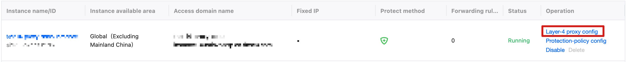 3. On the page that appears, find the target L4 proxy instance and click Layer-4 proxy config in the Operation column.