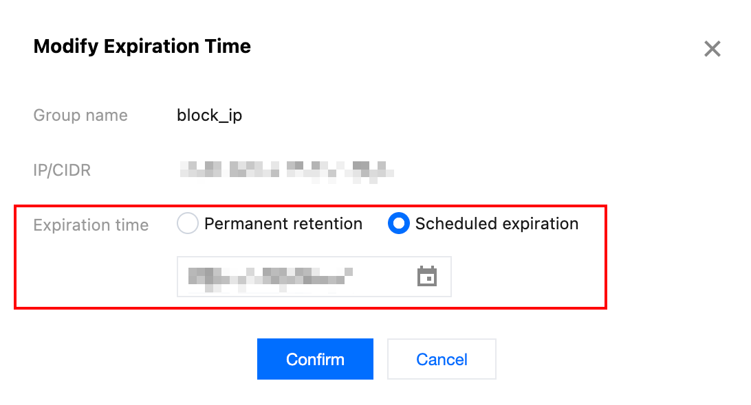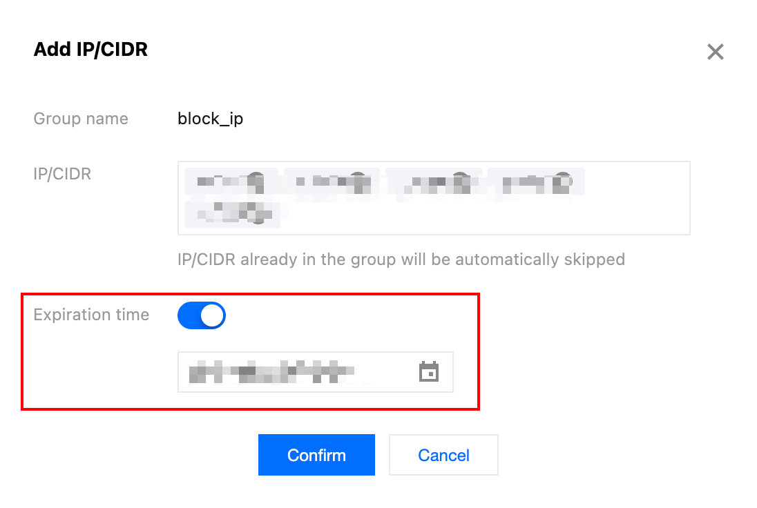 6. Click Confirm. Once saved, the temporary control IP will take effect immediately and be automatically removed from block_ip upon expiration.