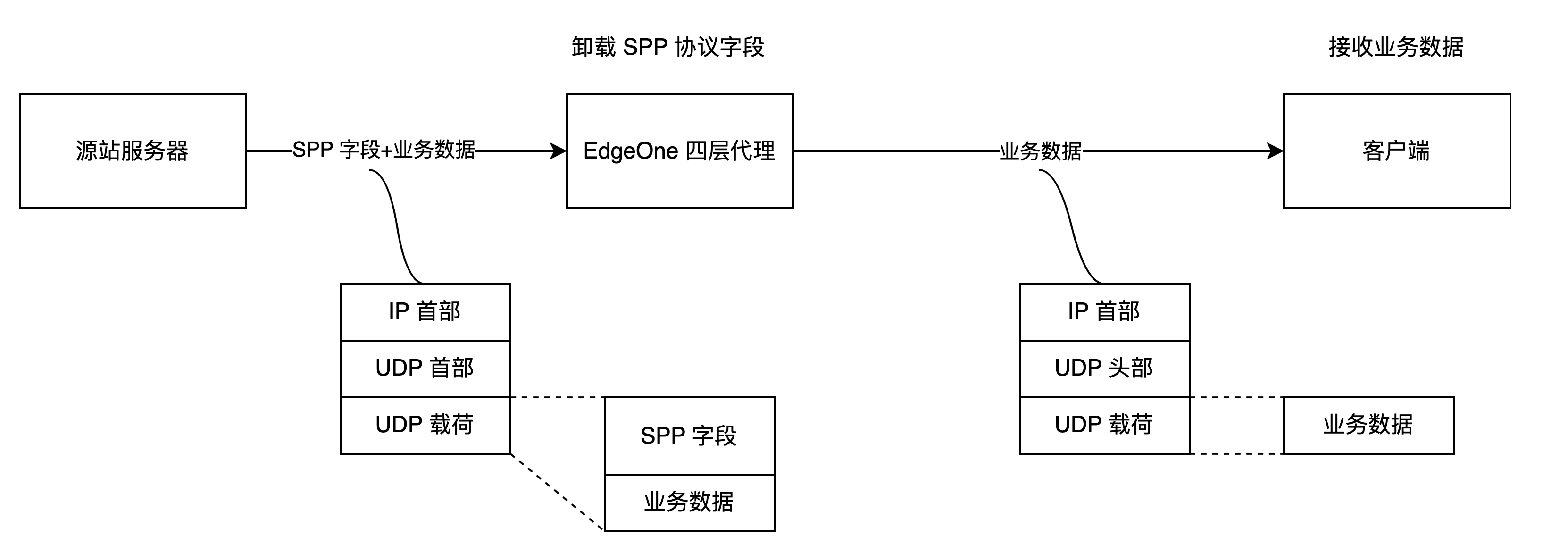 #include <stdio.h>#include <stdlib.h>#include <string.h>#include <arpa/inet.h>#include <netinet/in.h>#include <sys/socket.h>#define BUF_SIZE 1024struct NetworkConnection {uint16_t magic;struct in6_addr clientAddr;struct in6_addr proxyAddr;uint16_t clientPort;uint16_t proxyPort;};void handleConn(int sockfd) {struct sockaddr_in clientAddr;socklen_t addrLen = sizeof(clientAddr);unsigned char buf[BUF_SIZE];ssize_t n = recvfrom(sockfd, buf, BUF_SIZE, 0, (struct sockaddr *)&clientAddr, &addrLen);if (n < 0) {perror("Error reading from UDP connection");return;}// Convert the received bytes to a NetworkConnection struct.struct NetworkConnection nc;nc.magic = ntohs(*(uint16_t *)buf);if (nc.magic == 0x56EC) { // Magic with the value 0x56EC indicates an SPP header.memcpy(&nc.clientAddr, buf + 2, 16);memcpy(&nc.proxyAddr, buf + 18, 16);nc.clientPort = ntohs(*(uint16_t *)(buf + 34));nc.proxyPort = ntohs(*(uint16_t *)(buf + 36));printf("Received packet:\\n");printf("\\tmagic: %x\\n", nc.magic);char clientIp[INET6_ADDRSTRLEN];char proxyIp[INET6_ADDRSTRLEN];inet_ntop(AF_INET6, &nc.clientAddr, clientIp, INET6_ADDRSTRLEN);inet_ntop(AF_INET6, &nc.proxyAddr, proxyIp, INET6_ADDRSTRLEN);// Print the SPP header information, including magic, real client IP and port, as well as proxy IP and port.printf("\\tclient address: %s\\n", clientIp);printf("\\tproxy address: %s\\n", proxyIp);printf("\\tclient port: %d\\n", nc.clientPort);printf("\\tproxy port: %d\\n", nc.proxyPort);// Print the actual and effective payload.printf("\\tdata: %.*s\\n\\tcount: %zd\\n", (int)(n - 38), buf + 38, n);} else {printf("\\tdata: %.*s\\n\\tcount: %zd\\n", (int)n, buf, n);}// Respond with a packet. Note: The 38-byte SPP header must be returned completely.sendto(sockfd, buf, n, 0, (struct sockaddr *)&clientAddr, addrLen);}int main() {int sockfd = socket(AF_INET, SOCK_DGRAM, 0);if (sockfd < 0) {perror("Failed to create socket");exit(EXIT_FAILURE);}// Create a UDP address using the local address and port.struct sockaddr_in serverAddr;serverAddr.sin_family = AF_INET;serverAddr.sin_addr.s_addr = INADDR_ANY;serverAddr.sin_port = htons(6666);if (bind(sockfd, (struct sockaddr *)&serverAddr, sizeof(serverAddr)) < 0) {perror("Failed to bind");exit(EXIT_FAILURE);}while (1) {handleConn(sockfd);}}
