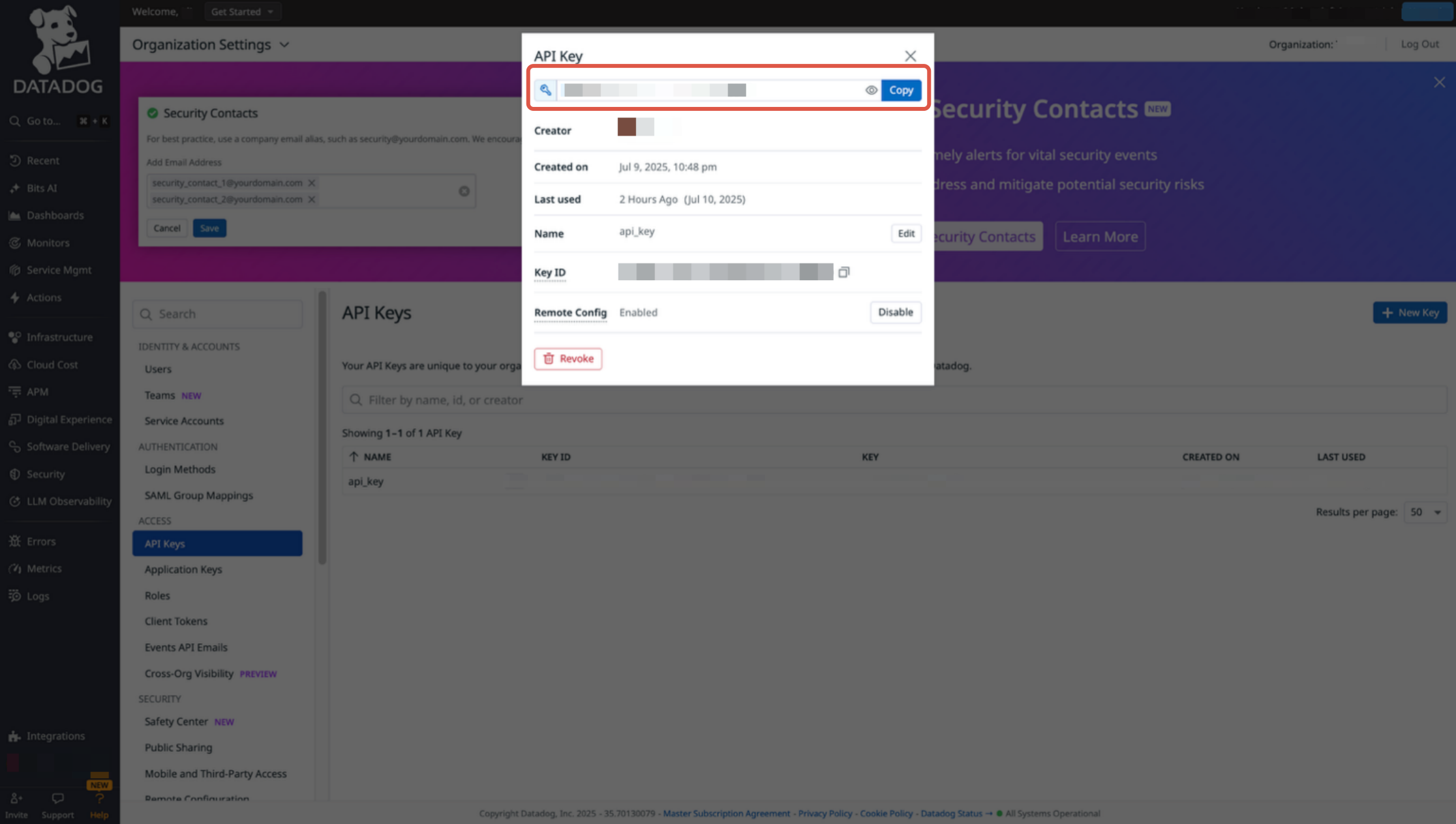 4. Record the API key value, which will be used as identity authentication in subsequent configuration.