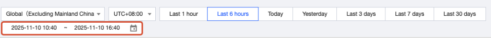 The EdgeOne log analysis page supports user customization of time range filter criteria. The following context mainly introduces two methods to filter the time range.