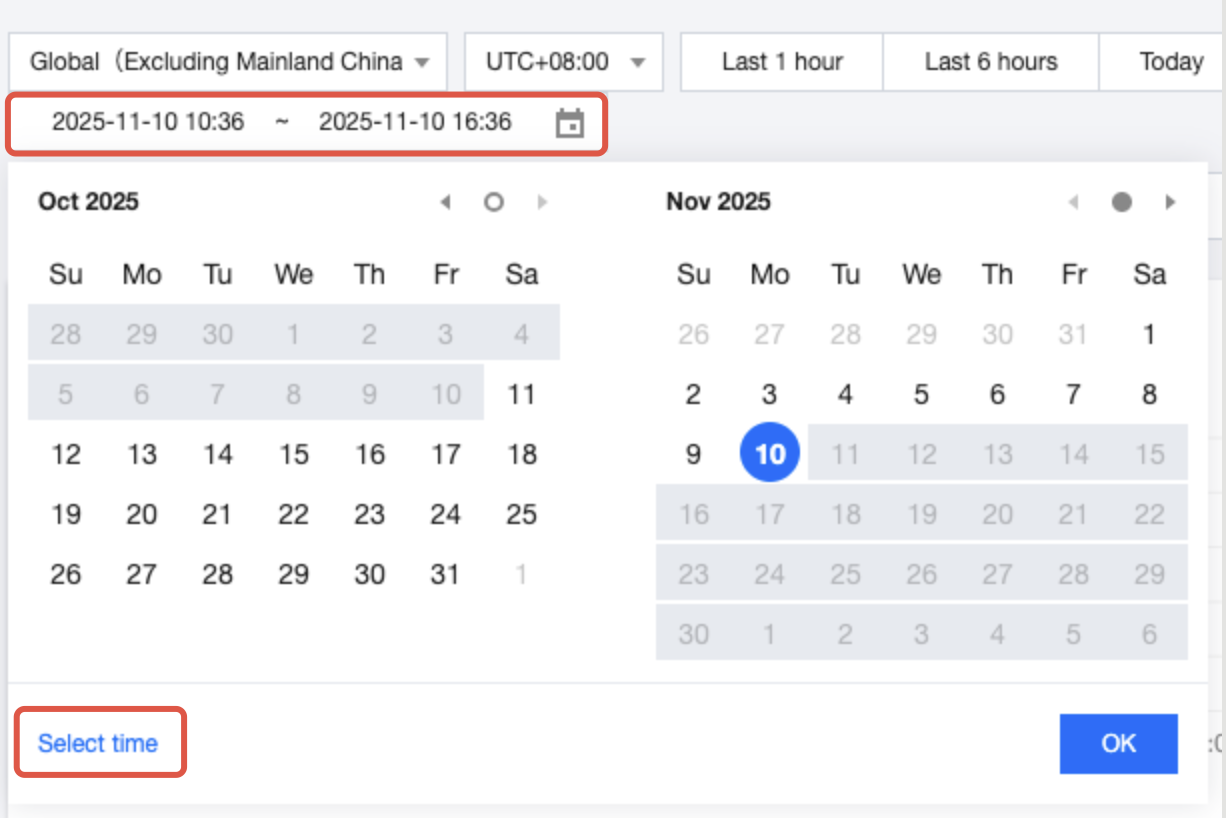 Custom query: You can also select a specific date and time range to query data within a custom time range.