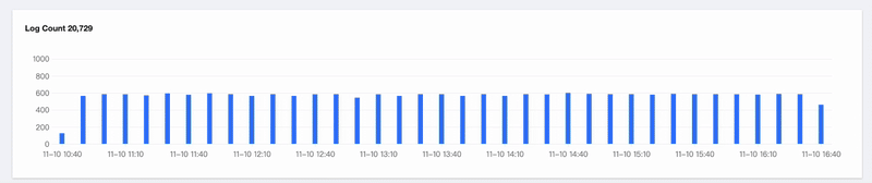 To view a specific time period on the bar trend chart, as shown below, click and slide on the curve to select the specific area. The corresponding time range will be filled in the top filtering bar and impact the log details.