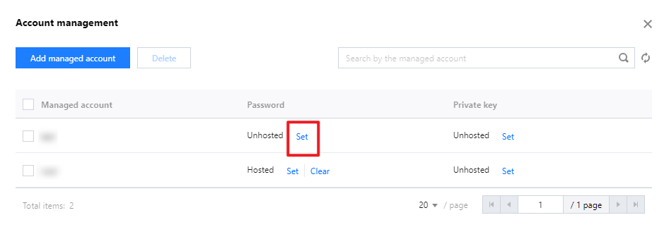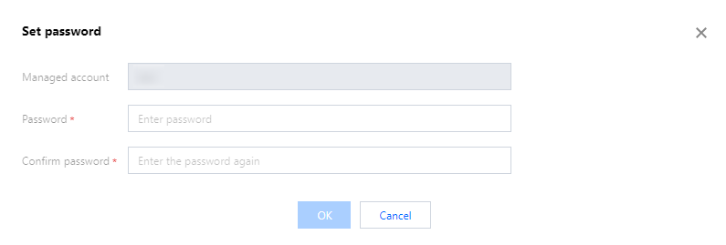 6. In the Add Host Account window, the newly added account has no password set. Click Set for the corresponding account, and the Set Password window will pop up.