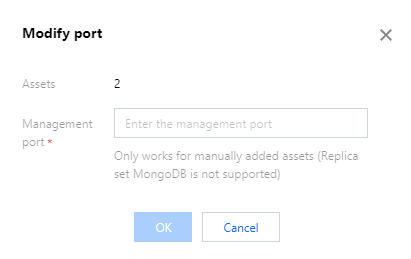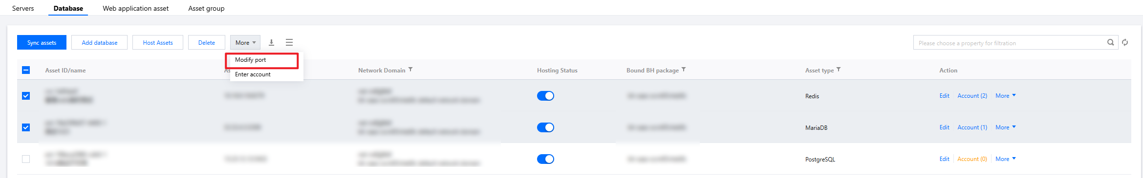 After asset synchronization, the default port is used (for instance, MySQL uses port 3306 by default). If the asset uses a port other than the default, it can be modified in batches.