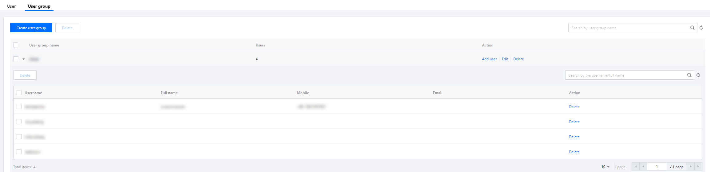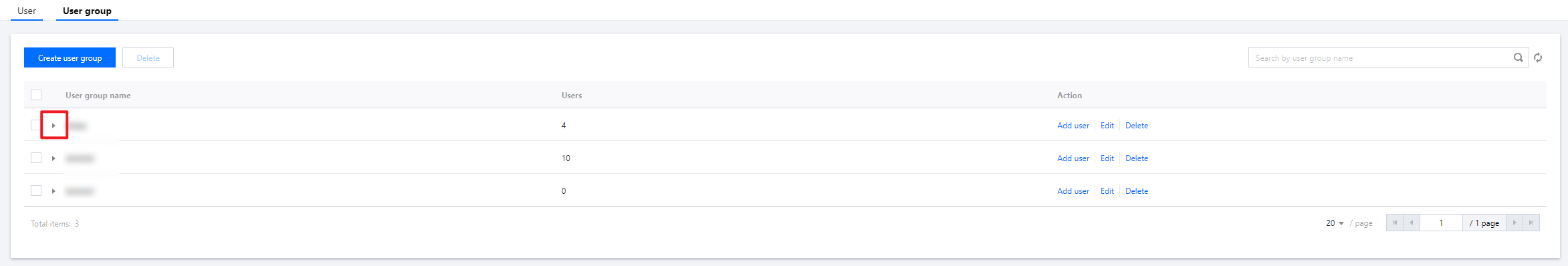3. On the User group page, click the icon to view the group members. 4. In the expanded information, you can check the details of the group members.