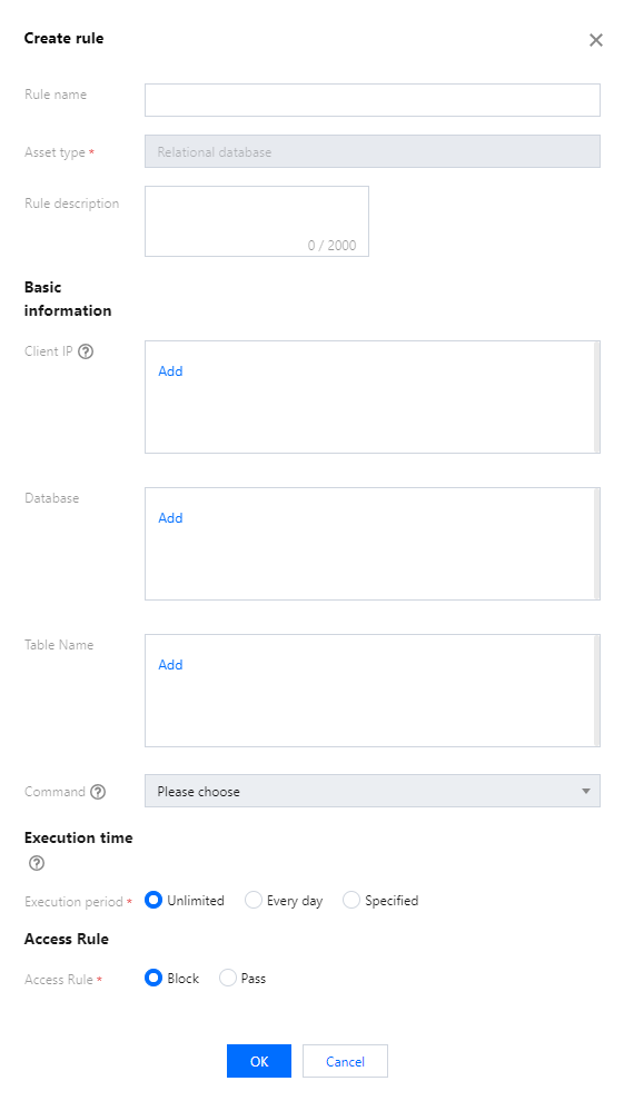 Execution time | The rule effective time or SQL statement execution time. Options include unlimited, Every day, or a specified. |