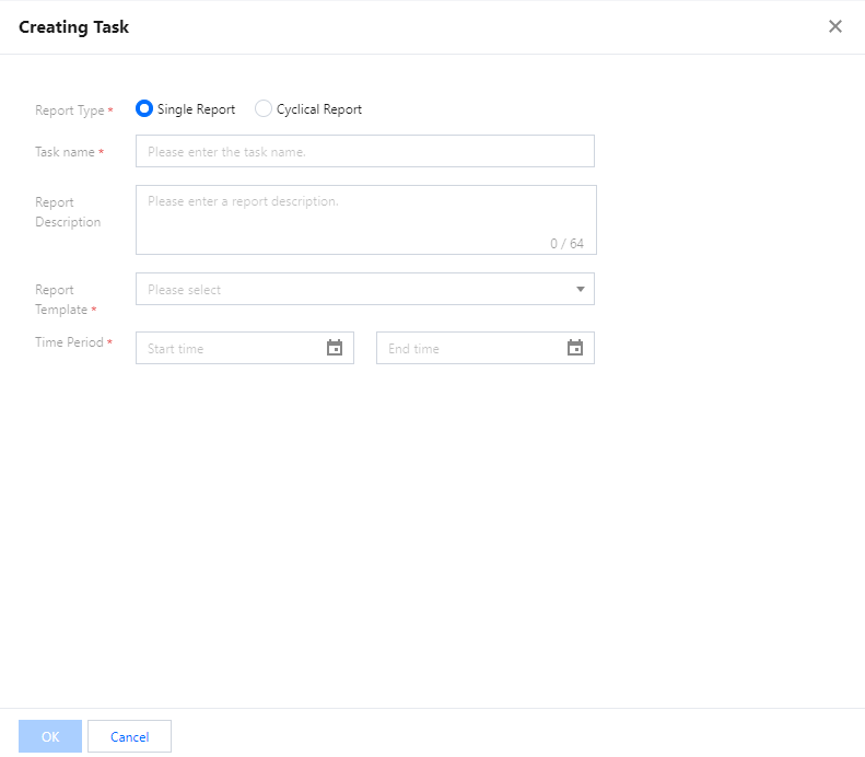 Time range | Select a specific start and end time based on actual requirements to generate the desired report. |