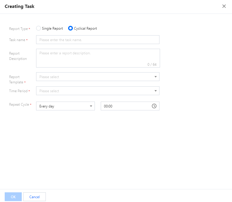 2. On the Creating Task panel, select Cyclical Report as the report type and configure the following details: