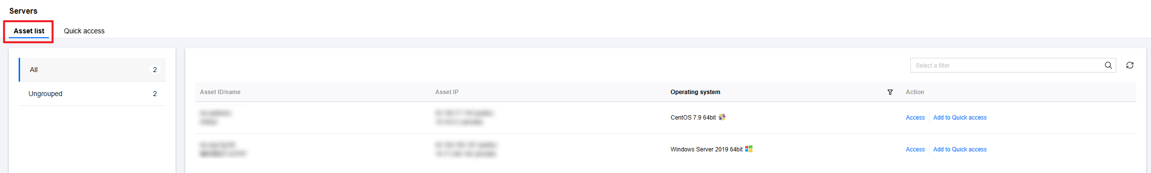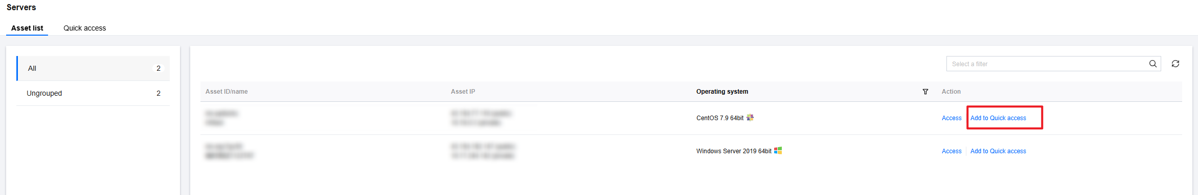 4. On the Access Host page, click Quick access to switch to the Quick Access page, where you can view all favorited hosts.