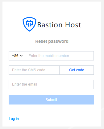 2. On the Password Reset page, enter your phone number, verification code, and email information, then click Submit.
