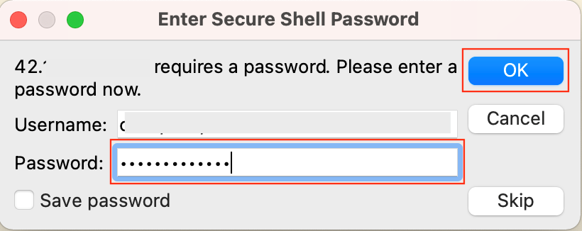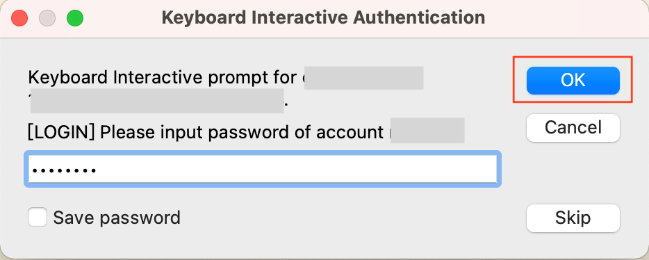 8. If the password for the target host account has not been managed, enter the host account's password in the pop-up window and click OK. If the password has already been managed, skip this step.