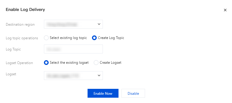Logset | Select the existing logset: You can filter the existing logset in the search box. Create a logset: This option is available only when the log topic operation is set to Create a Log Topic. |