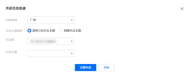 目标地域 | 选择日志投递的地域,支持异地投递。 |