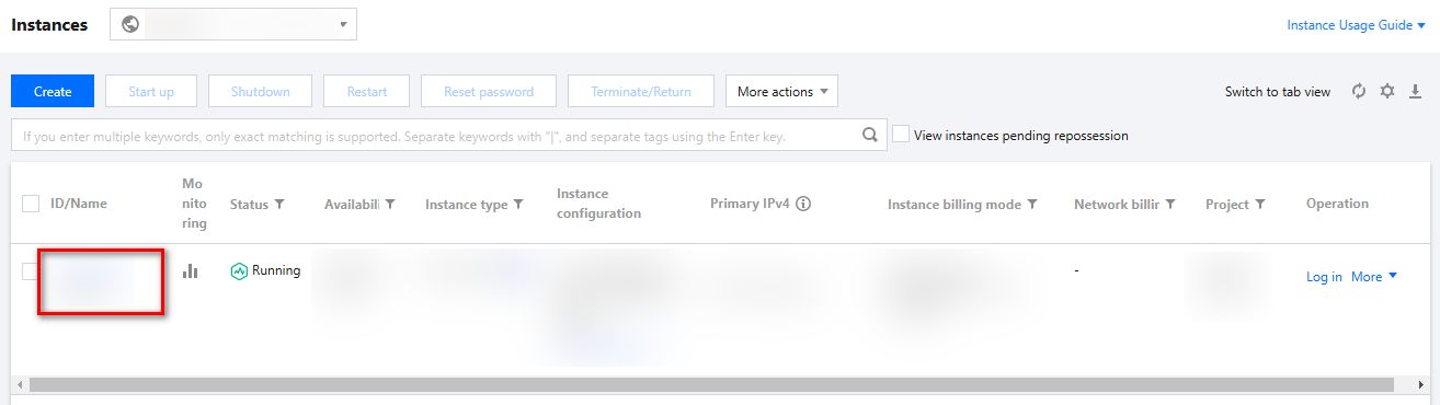 3. On the Instance page, click the ID/Name > Security groups of the CVM instance that requires a security group binding to access the security group details page for that instance.