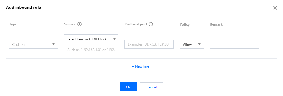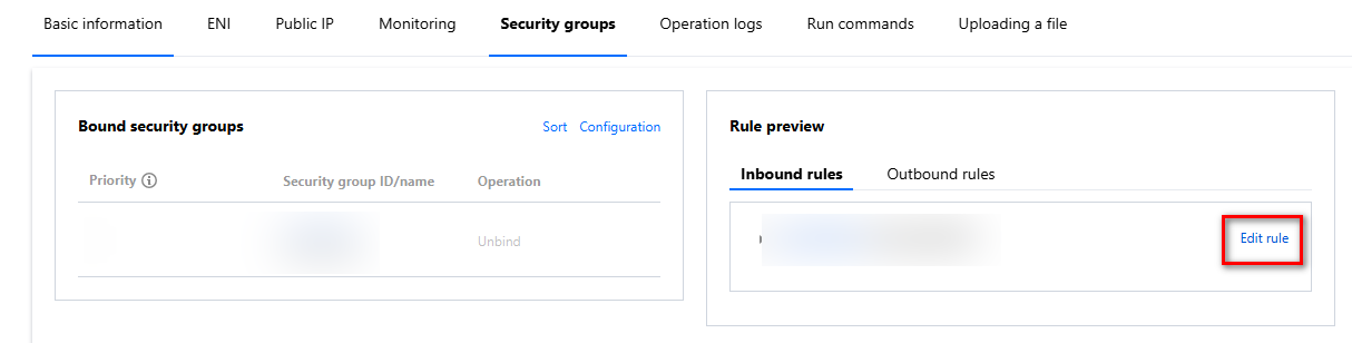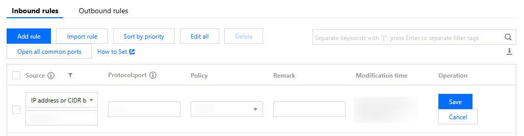 Edit: Click Edit rule, modify the source IP and protocol port, and click Save.