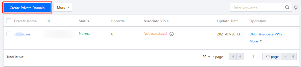 5. After creation, go back to the domain list page, select the private domain you just created, and click Resolve in the operation column.