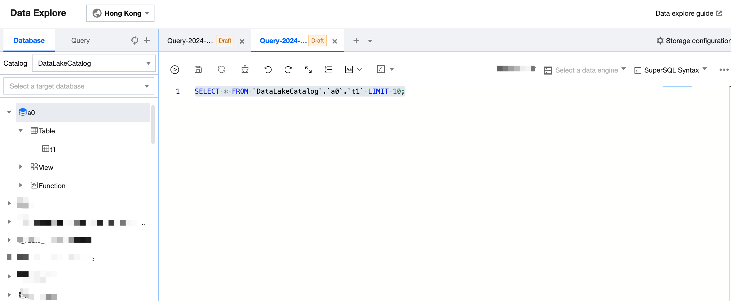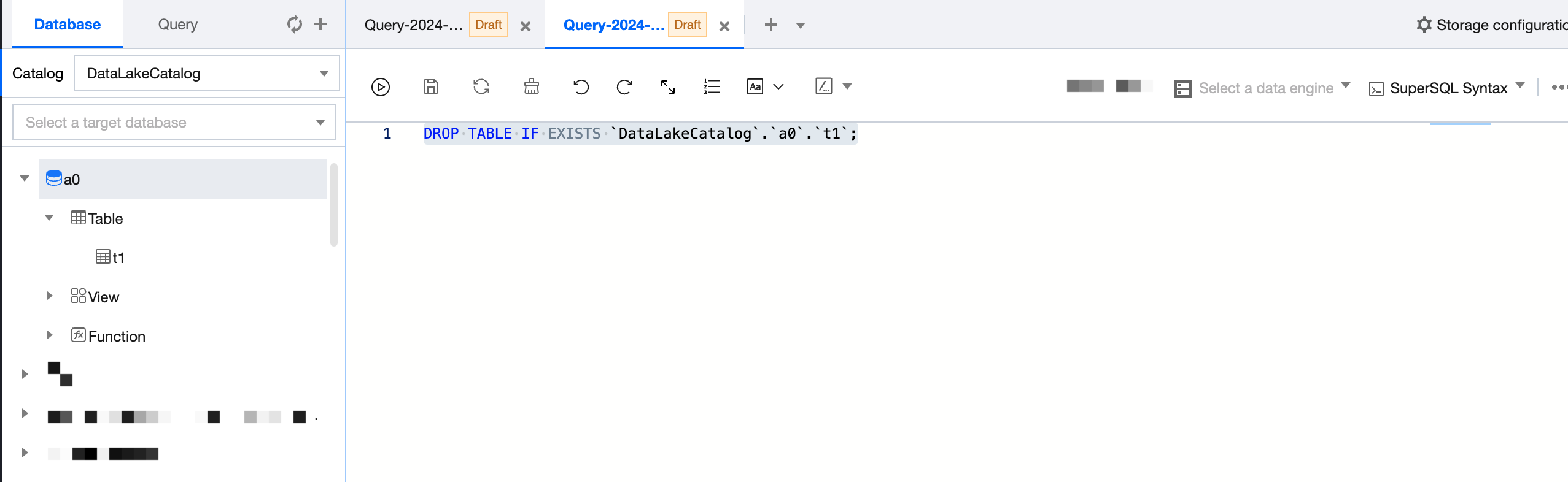 When a data table under the DataLakeCatalog directory is deleted, all data in the data table will be cleared. Please operate with caution.