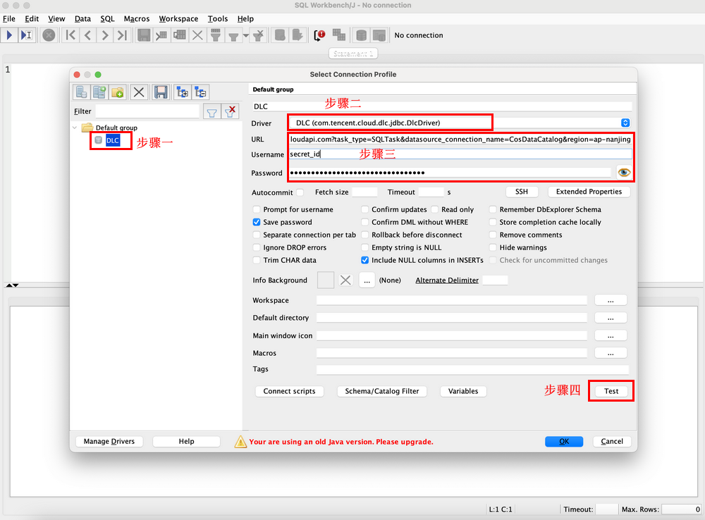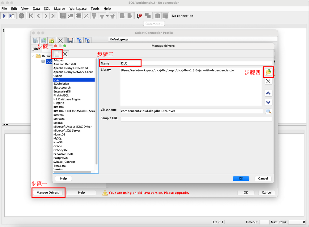 Class.forName("com.tencent.cloud.dlc.jdbc.DlcDriver");
