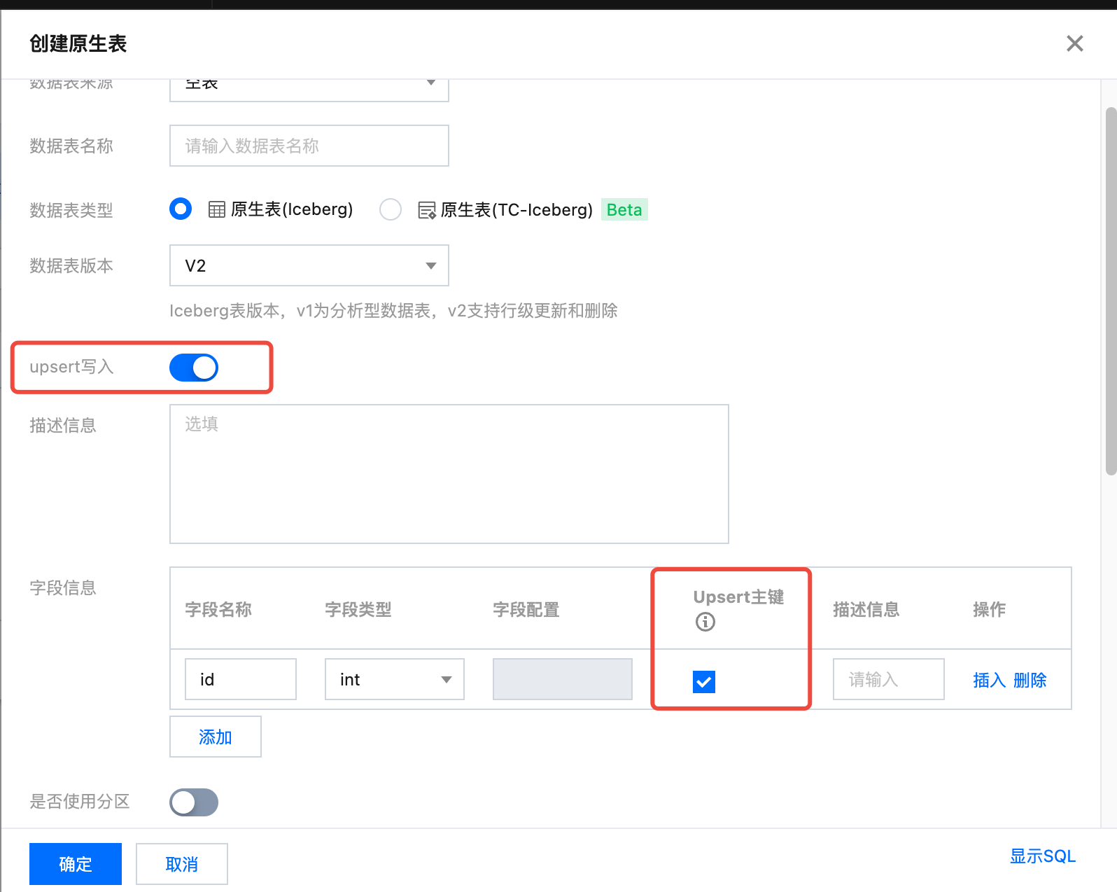 write.upsert.enabled | 是否开启 upsert,取值为 true;不设置则为不开启 | 如果用户写入场景有 upsert,必须设置为 true |