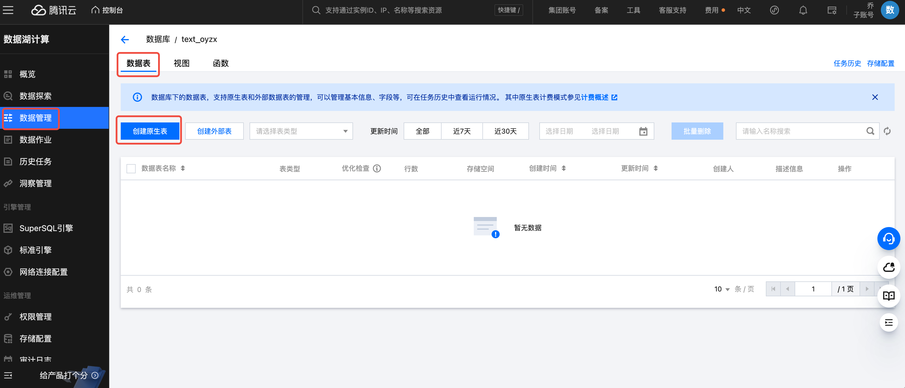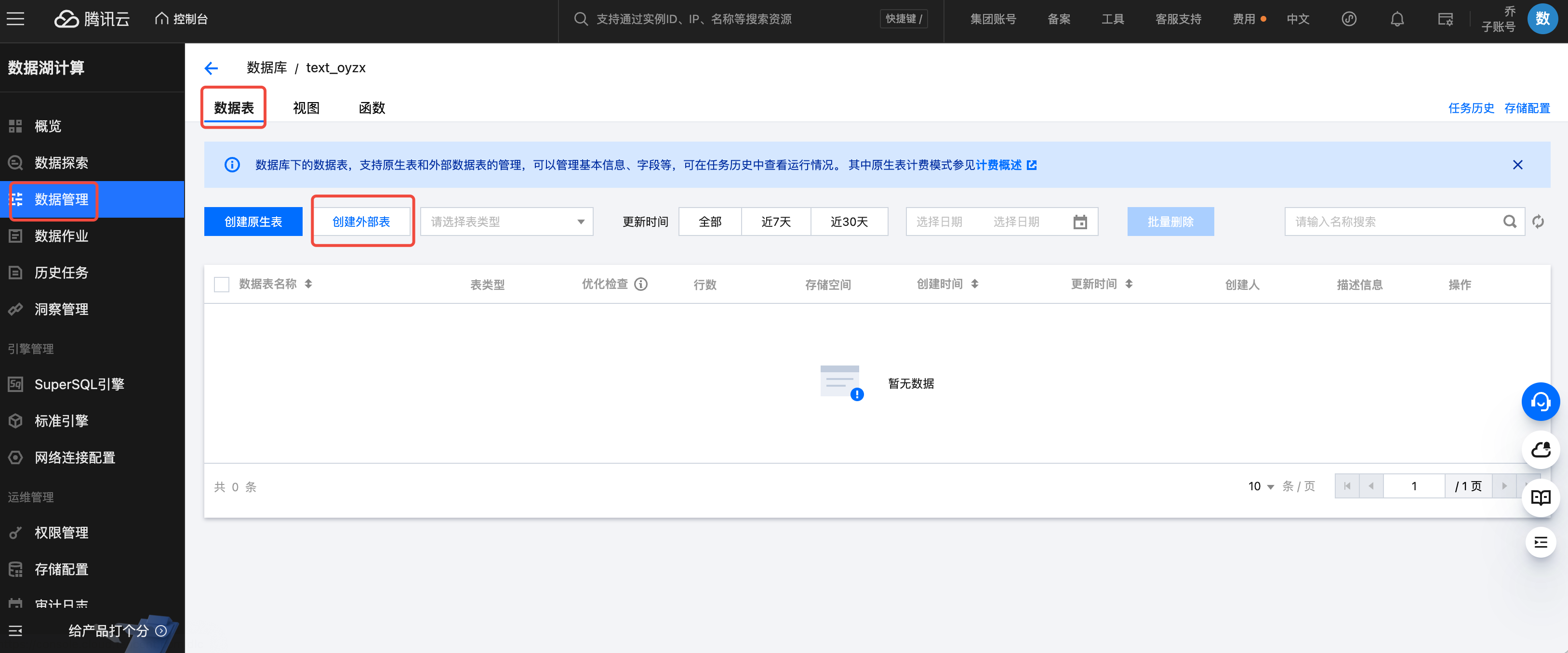 /**LOCATION: 指向对应的 cos 存储目录,其他保持原样*/CREATE EXTERNAL TABLE IF NOT EXISTS dlc_db.parquet_demo(`id` int, `name` string)PARTITIONED BY (`dt` string)STORED AS PARQUET LOCATION 'cosn://your_cos_location';