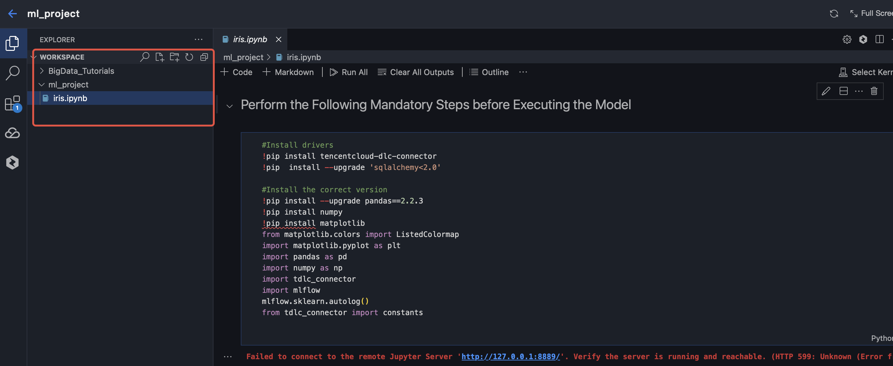 Before running the model, you need to install the required tencentcloud-dlc-connector and complete the corresponding configurations.