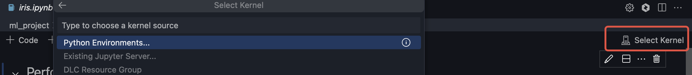 1. Select the machine learning feature.