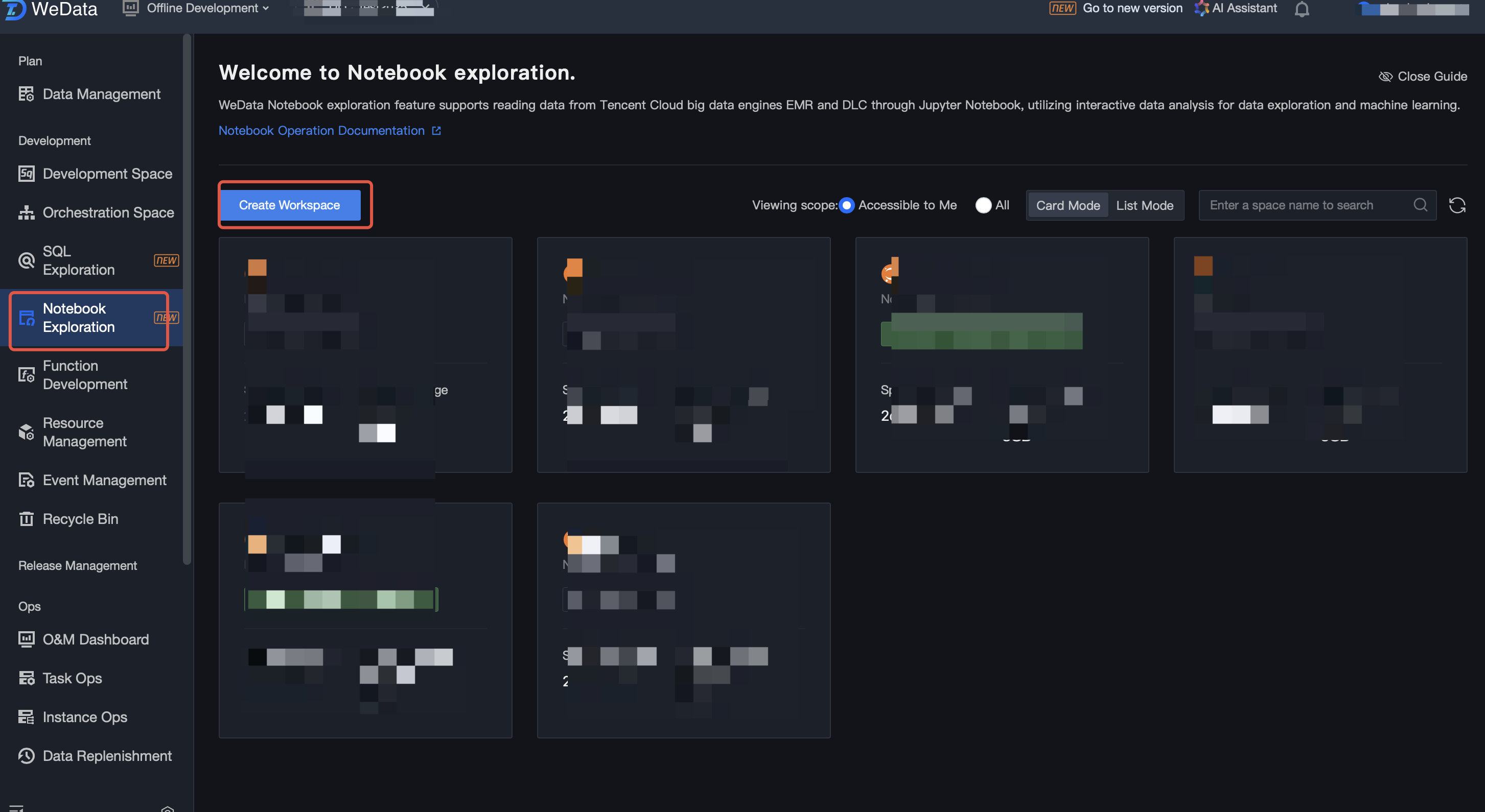 Going to the WeData-Notebook Feature for Demo Practice