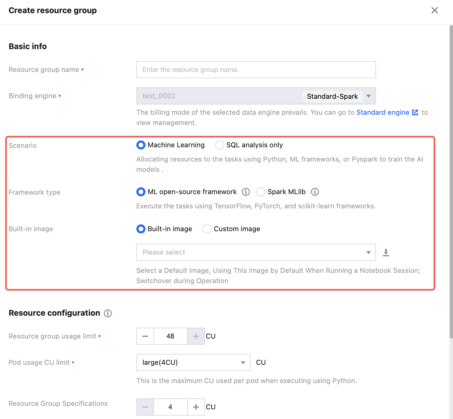 Resource group: As a secondary queue division of the computing resources within a Spark Standard Engine, resource groups belong to the parent Standard Engine. Resource groups under the same engine share resources with each other.