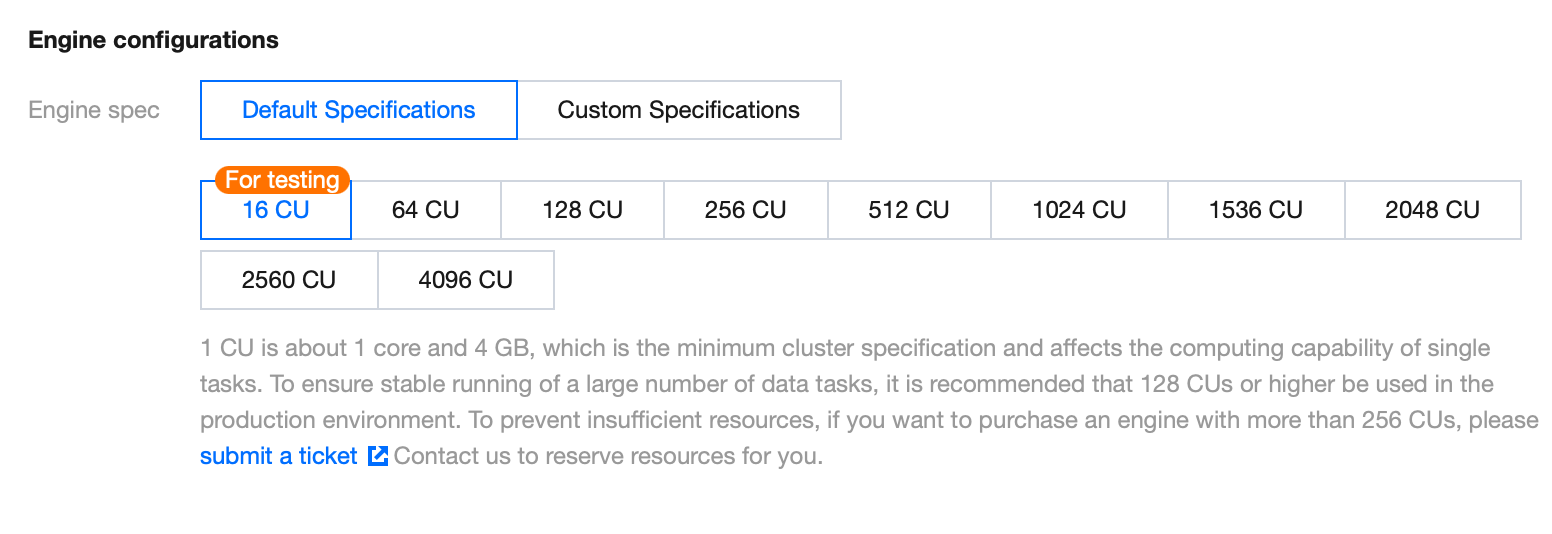 3. For pay-as-you-go clusters, resources are only allocated upon usage. When requesting large CU allocations, full capacity cannot be guaranteed.