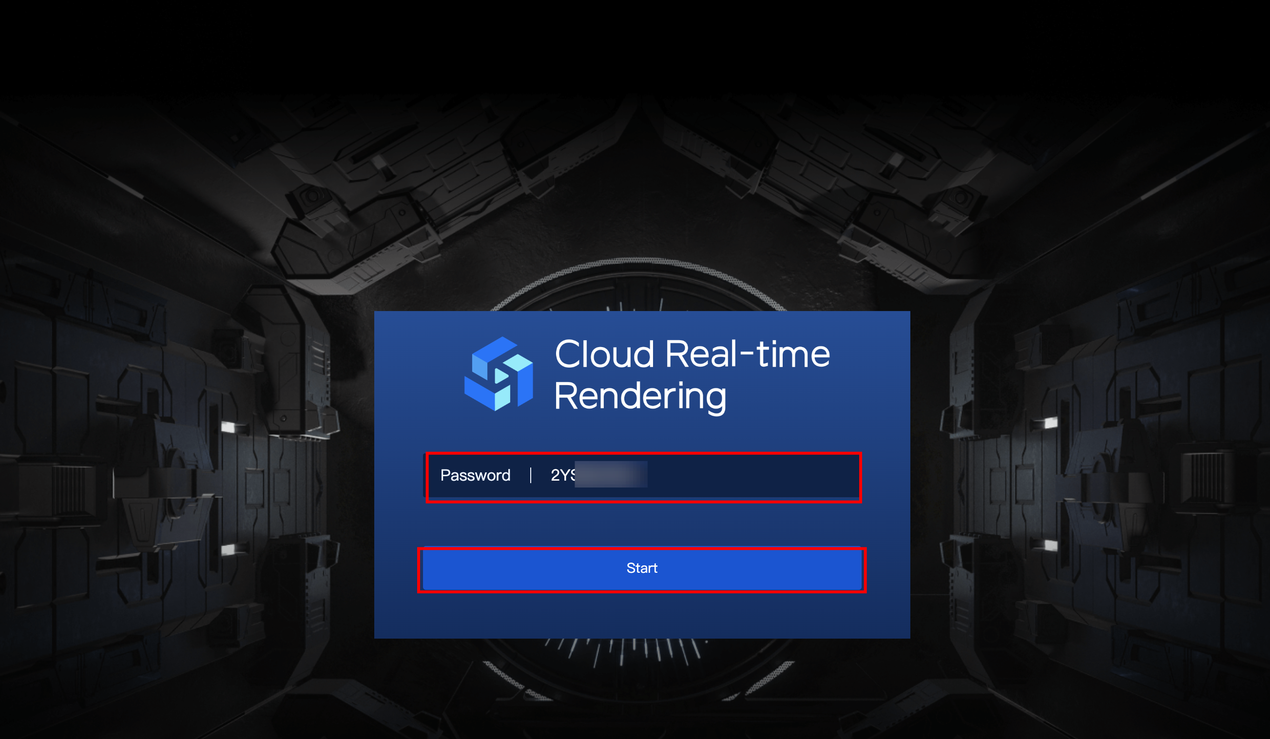 5. Enter the password on the browser tab in the new window and click Start.
