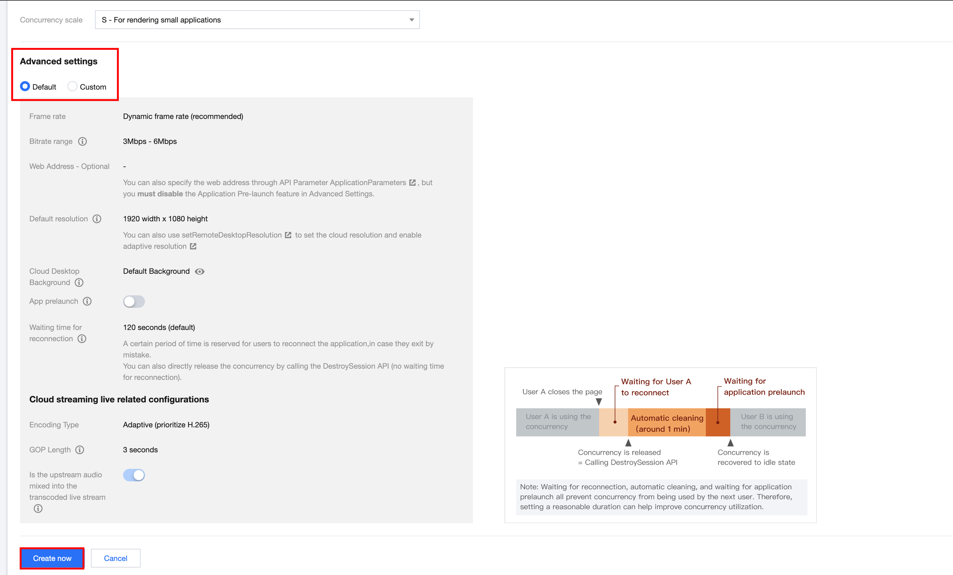 2.4 Select a concurrency scale: Select a concurrency scale based on the needs. (CPU concurrency packages are recommended. This document takes S - For rendering small applications as an example.)