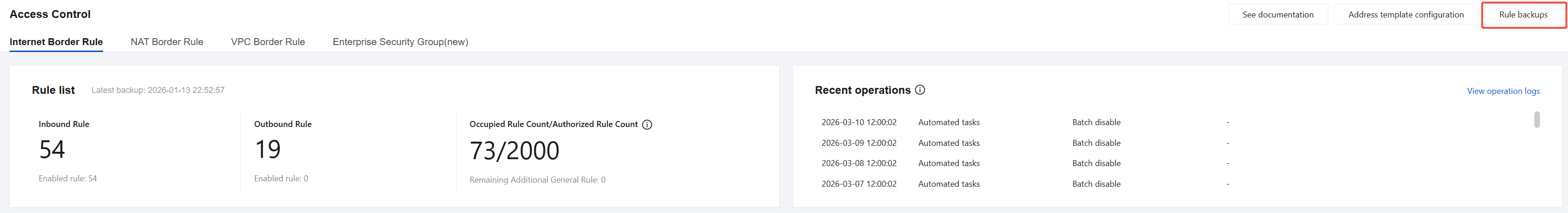 Rule rollback will overwrite the corresponding rule list, and existing policies will be deleted. To ensure data security, it is recommended to back up the current rule list first.