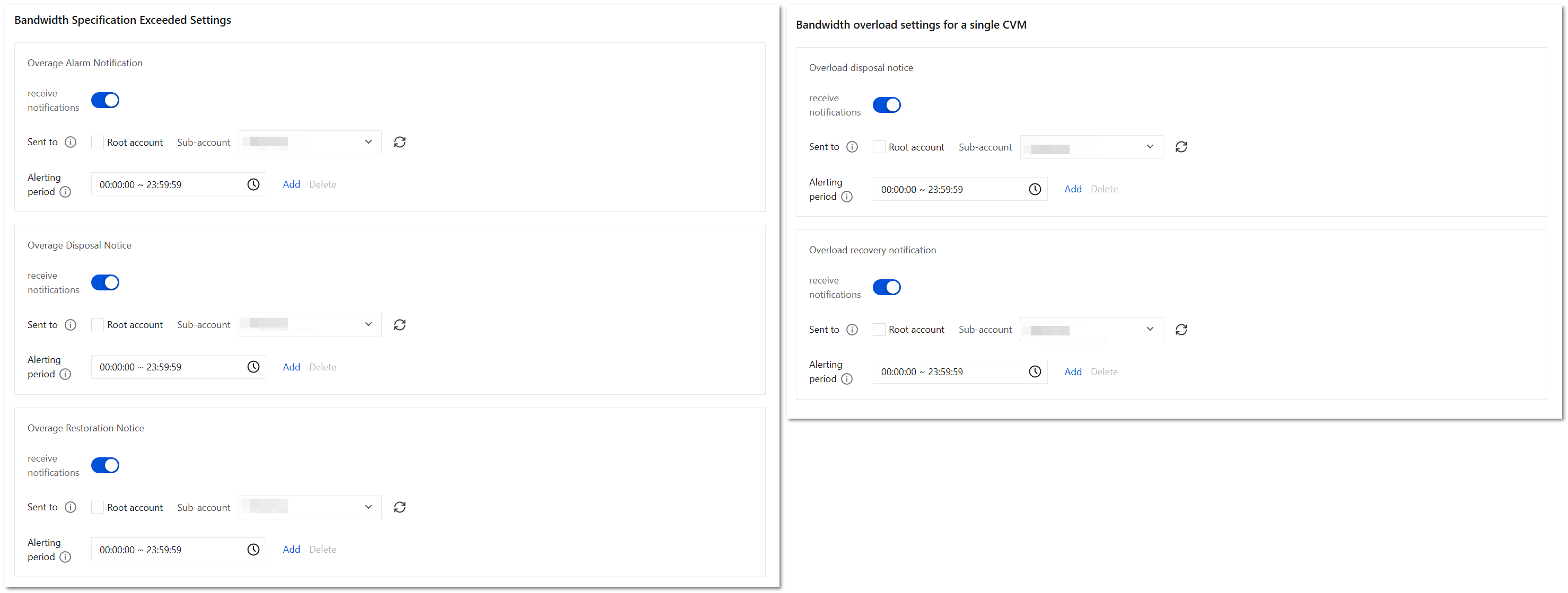 Sent to: Select the sub-accounts to be notified from the sub-account list, and simultaneously select the master account for notification.