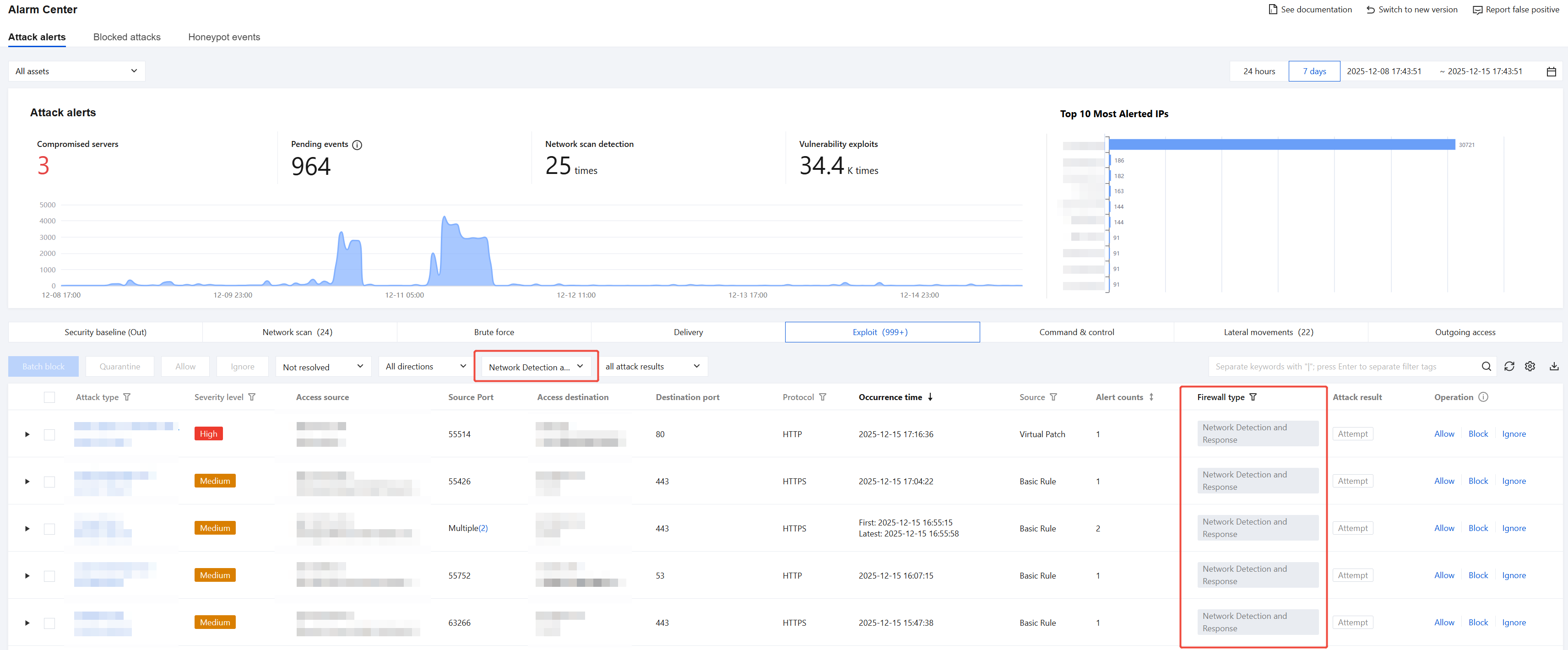 After the Network Detction and Response switch is enabled, CFW mirrors outbound/inbound server traffic to perform the following analyses: